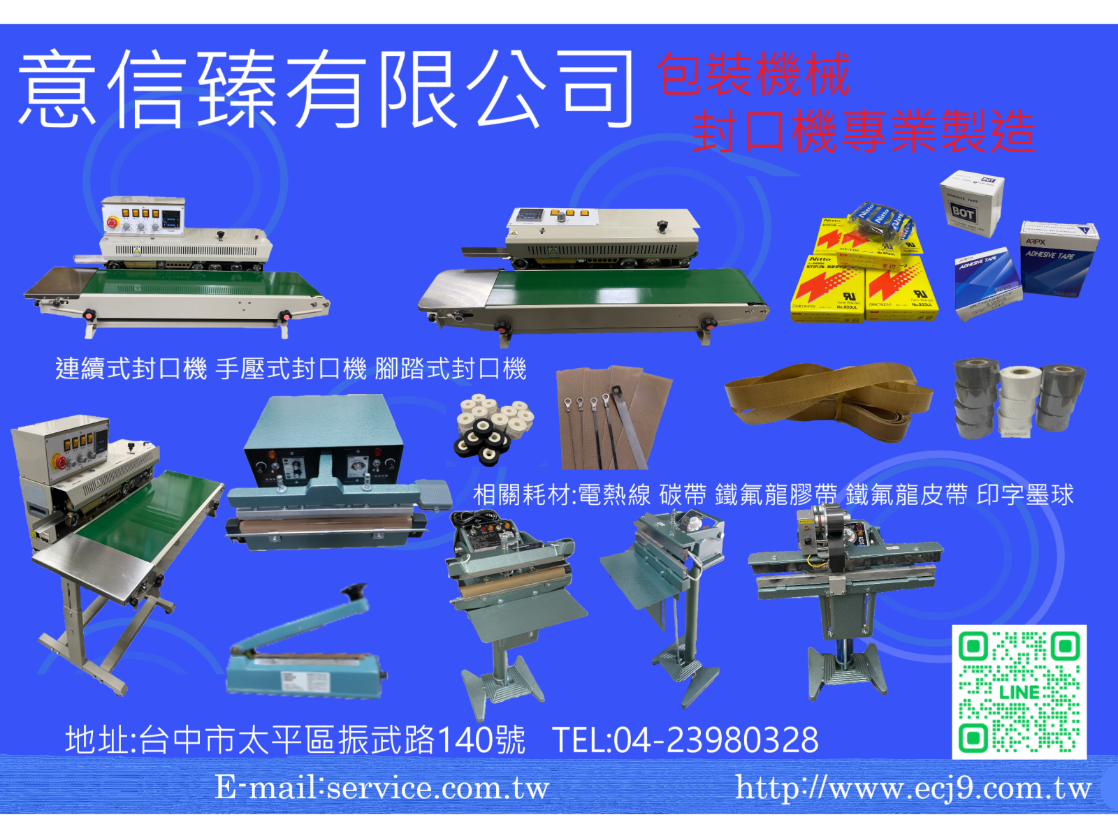 ◆ 連續式封口機 ◆ 腳踏式封口機 ◆ 手壓式、手提式封口機 ◆ 日期印字機 ◆ 真空包裝機 ◆ 收縮機 ◆ 熱風槍 ◆ 保鮮膜機 ◆ 秤重分裝機 ◆ 相關零件耗材 ◆ 各式封口機 包裝機械 客製化訂做設計 全省批發零售 維修保養 相關業務皆可洽詢